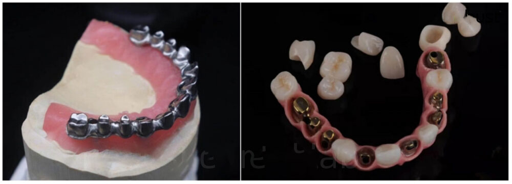 - 3) Easy repair — the titanium bar often comes with single crowns. If 1 or 2 crowns are broken, doctors can just remove them, and take an impression or a digital scan. Only broken crowns will be remade, instead of the whole bridge.