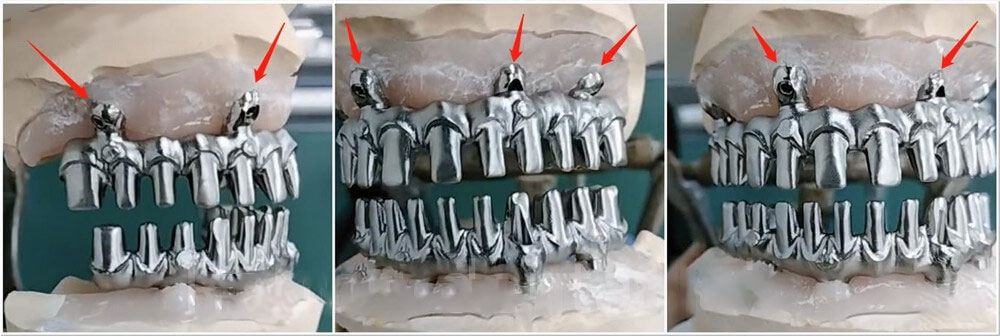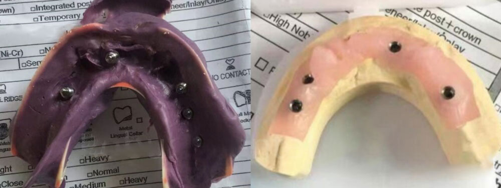 - 2) Easy placement — Before shipment, we will cement all crowns onto the titanium bar. Doctors can just insert the whole bridge.