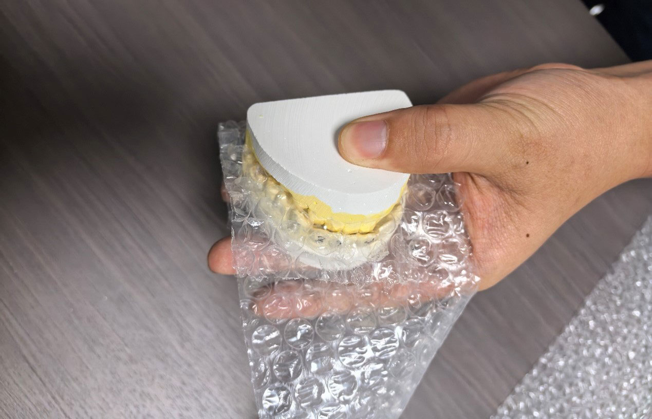 This tutorial demonstrates the exact packaging method we use in our lab to protect Dental Cases during transportation. The entire process uses two long strips of bubble wrap and follows a front–back–first, then side protection sequence.