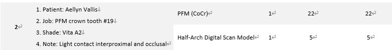Lab fees include both the pfm (cocr) cost and the digital model fee. Therefore, when you outsource a pfm (cocr) case, the total charge will be structured as shown in the image below.